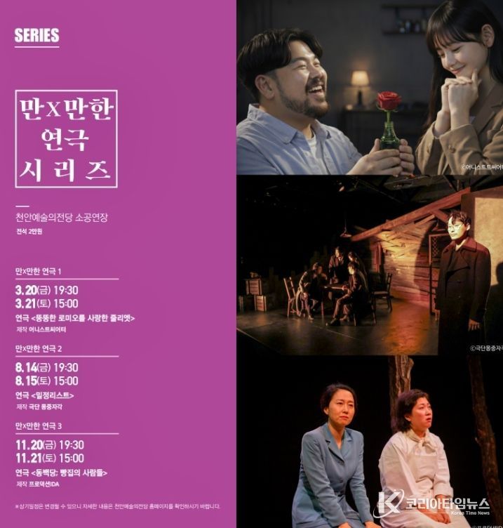 코리아타임뉴스 김택호 기자 | 천안문화재단이 오는 10일부터 천안예술의전당 기획공연 ‘만X만한 연극 시리즈’의 티켓 예매를 시작한다.