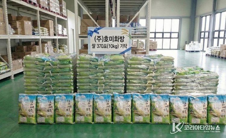 코리아타임뉴스 오영주 기자 | 거창군은 지난 6일, 출향 향우 ㈜호미화방 김경희 대표가 고향의 어려운 이웃을 위해 1,165만 원 상당의 쌀(10kg) 370포를 기탁했다고 밝혔다.