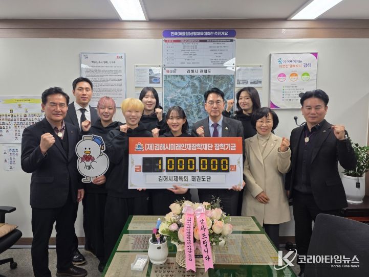 코리아타임뉴스 오영주 기자 | 김해시미래인재장학재단은 20일 김해시체육회 태권도단(회장 서동신)에서 장학기금 100만원을 기탁했다고 밝혔다.