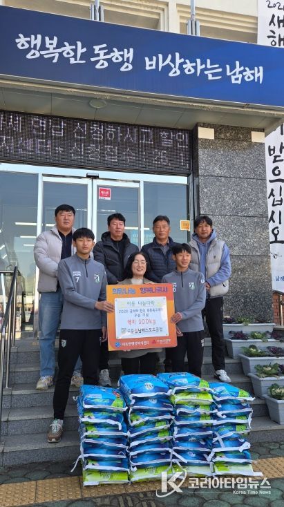 조혜은 이동면장은 “우승의 기쁨을 나눔으로 이어준 보물섬남해스포츠클럽과 학생들에게 깊이 감사드린다”며 “기탁된 백미는 관내 취약계층과 복지사각지대 가구에 소중히 전달하겠다”고 밝혔다.