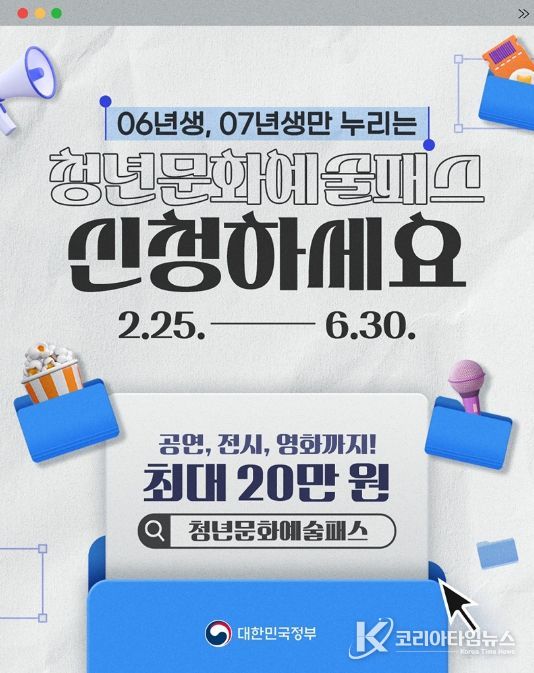 코리아타임뉴스 윤광희 기자 | 06년생, 07년생만 누리는 '청년문화예술패스' 신청하세요.