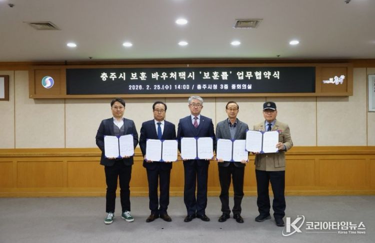 코리아타임뉴스 박찬식 기자 | 충주시는 25일 시청 3층 중회의실에서 70세 이상 국가보훈대상자의 이동 편의 증진을 위해 보훈대상자 바우처 택시 ‘보훈콜’사업 업무 협약을 체결했다고 밝혔다.