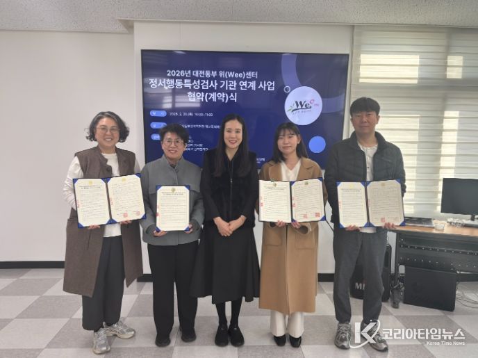 코리아타임뉴스 사회팀 | 대전동부교육지원청 위(Wee)센터는 2월 26일, 2026년 학생정서·행동특성검사 고위험군 학생에 대한 맞춤형 사후관리 지원을 강화하기 위해 전문상담기관 4곳과 업무협약을 체결했다.
