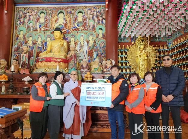 코리아타임뉴스 경기취재본부 | 대한불교조계종 운수암은 지난 3일 양성면지역사회보장협의체에 쌀 10kg 50포를 기탁했다.
