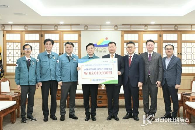 코리아타임뉴스 김택호 기자 | 예산군은 지난 5일 군청에서 NH농협은행 예산군지부와 함께 제휴카드 적립금 기탁식을 개최했다.