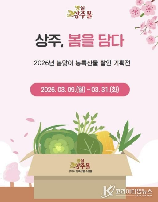 코리아타임뉴스 노승선 기자 | 상주시는 봄을 맞아 시민들에게 신선한 농특산물 먹거리를 합리적인 가격에 제공하고, 지역 농가와 생산자의 판로 확대를 지원하기 위해 ‘상주, 봄을 담다’봄 농특산물 먹거리 온라인몰 할인 기획전을 운영한다.