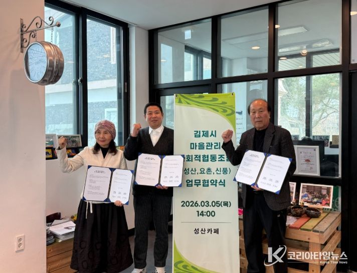 코리아타임뉴스 전북취재본부 | 김제시는 마을관리사회적협동조합 3개소가 지난 5일 상호 협력 강화를 위한 업무협약(MOU)을 체결하고 지역사회에 기반한 도시재생 상생 네트워크 구축에 나섰다고 밝혔다.