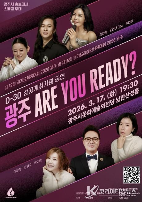 코리아타임뉴스 이아름 기자 | 광주시문화재단은 오는 17일 ‘제72회 경기도체육대회 및 제16회 경기도장애인체육대회 2026 광주’의 성공 개최를 기원하고 대회 개막 30일 전을 기념하는 ‘광주 ARE YOU READY?’ 공연을 개최한다고 6일 밝혔다.