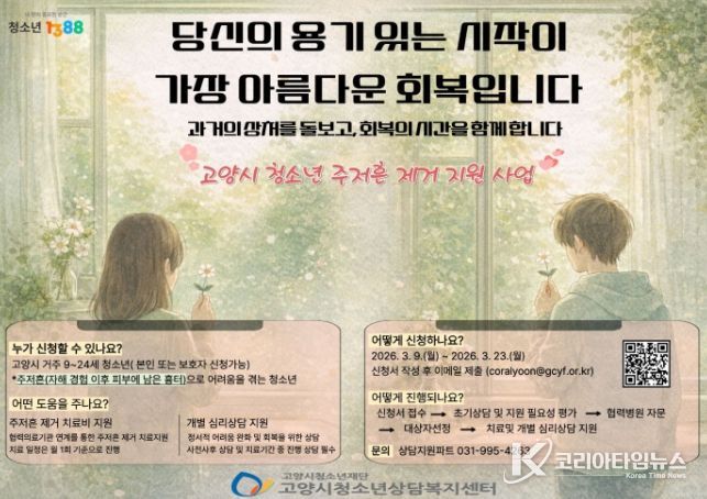 코리아타임뉴스 기동취재팀 | 고양시청소년재단 고양시청소년상담복지센터는 자살·자해 흔적(주저흔)으로 인해 심리적 위축과 사회생활의 어려움을 겪고 있는 청소년을 지원하기 위해 ‘주저흔(자해 흔적) 제거 지원 사업’을 추진한다고 6일 밝혔다.