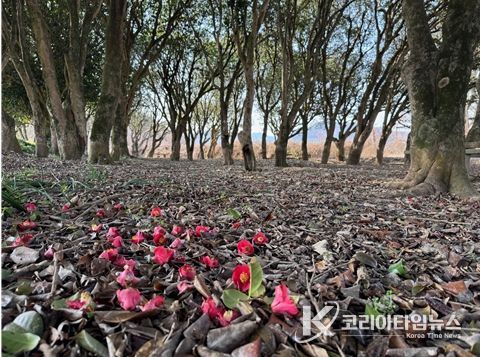 코리아타임뉴스 노승선 기자 | 장흥군 묵촌마을에 조성된 동백림에 동백꽃이 만개했다.