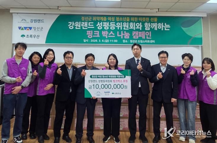 코리아타임뉴스 이아름 기자 | 정선군은 3월 6일 정선군 여성회관 소회의실에서 강원랜드 성평등위원회와 초록우산 어린이재단 강원지역본부가 후원하는 ‘핑크박스’ 전달식을 개최했다.
