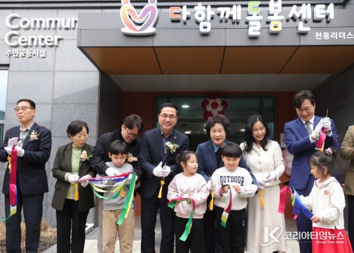 ‘다함께돌봄센터 천동 리더스4’는 희망복지플러스 사회적협동조합이 운영을 맡아 지역 초등학생을 대상으로 방과후 돌봄서비스를 제공하며, 놀이와 학습지도 등 다양한 프로그램을 운영할 예정이다.