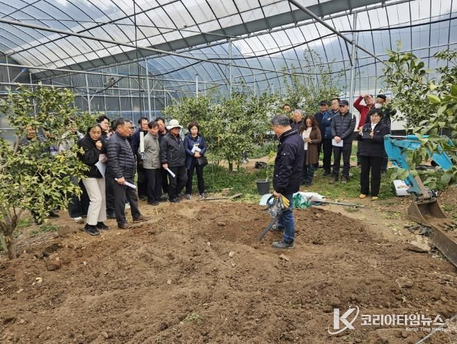 코리아타임뉴스 전남취재본부 | 고흥군은 지난 3일부터 5일까지 농업기술센터 대교육장과 시험포장에서 유자 재배 농업인 160여 명을 대상으로 ‘유자 묘목 식재 및 유목 수형 만들기 교육’을 실시했다고 밝혔다.