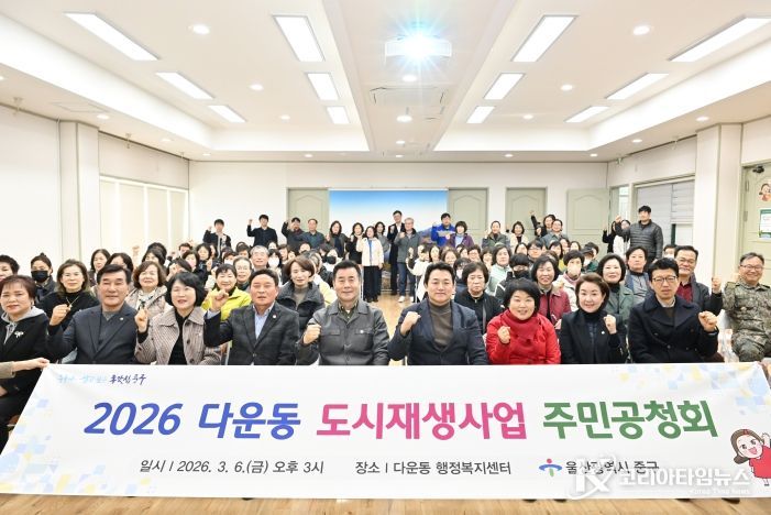 코리아타임뉴스 울산취재본부 | 울산 중구가 3월 6일 오후 3시 다운동 행정복지센터 2층 강당에서 ‘다운동 도시재생 활성화계획’ 변경 수립을 위한 주민공청회를 개최했다.