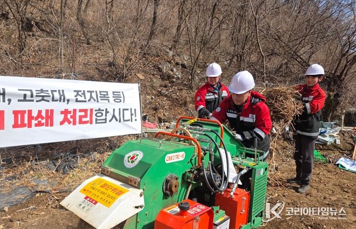 코리아타임뉴스 박찬식 기자 | 단양군산림조합은 봄철 산불 발생 위험이 높아지는 시기를 맞아 불법 소각행위를 사전에 차단하고 산불 예방을 강화하기 위해 '전국 산림조합 영농부산물 일제 파쇄 주간'을 운영하며, 3월 4일 조합원 농지에서 영농부산물 파쇄작업을 실시했다고 밝혔다.