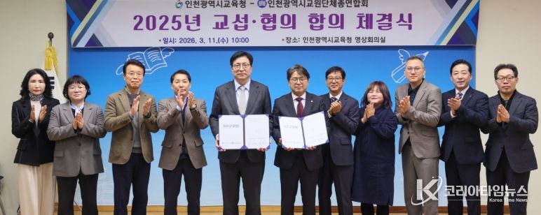코리아타임뉴스 사회팀 | 인천광역시교육청은 11일 인천교원단체총연합회(회장 윤홍기)와 ‘교섭‧협의 합의서’를 체결했다.