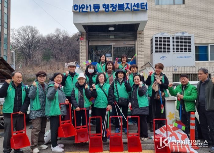 코리아타임뉴스 경기취재본부 | 광명시 하안1동 새마을부녀회와 지도자협의회는 활기찬 새봄을 맞이해 11일 하안1동 행정복지센터 일대에서 환경 정비 활동을 펼쳤다.