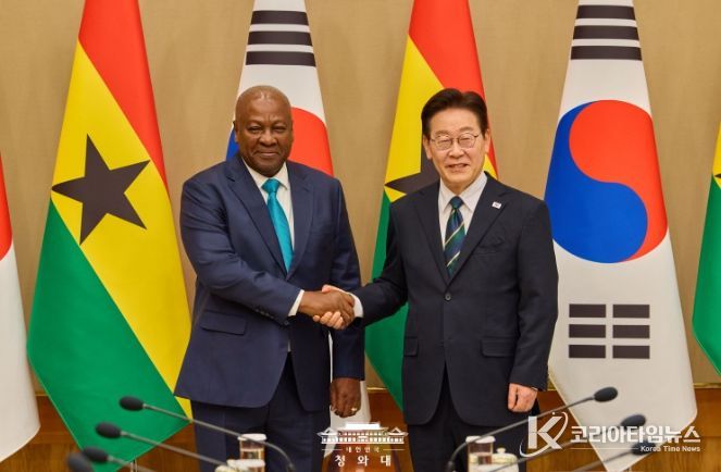 코리아타임뉴스 이아름 기자 | 이재명 대통령은 11일 오후 우리나라를 실무 방한한 존 드라마니 마하마 가나 대통령과 정상회담을 가졌다고 강유정 청와대 대변인이 서면 브리핑을 통해 밝혔다.