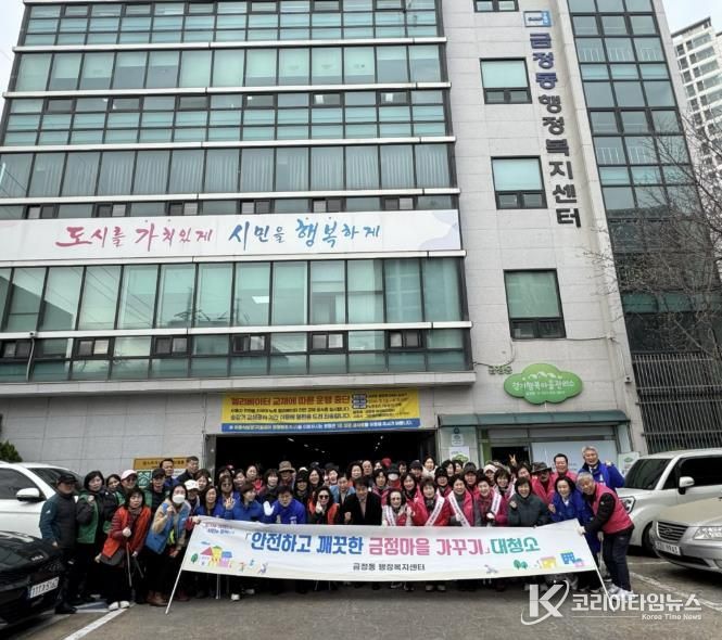 코리아타임뉴스 사회팀 | 군포시 금정동에서는 지난 3월 11일 6개 직능단체 및 주민 등 80여명이 함께 참여한 가운데 “깨끗한 금정마을 가꾸기” 대청소 행사를 진행했다.