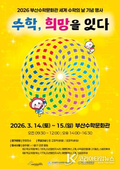 코리아타임뉴스 사회팀 | 부산광역시교육청창의융합교육원은 오는 14일과 15일 이틀간 부산진구 부전동 부산수학문화관에서 학생들을 대상으로 ‘수학, 희망을 잇다’ 행사를 개최한다.
