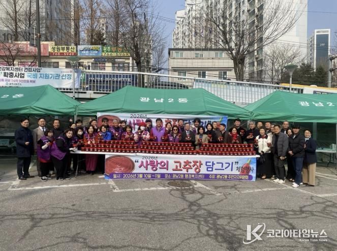 코리아타임뉴스 사회팀 | 광주시 광남2동 주민자치위원회는 광남2동 행정복지센터에서 지난 10일과 11일 이틀간 ‘2026 사랑의 고추장 담그기 체험 및 판매행사’를 개최했다.