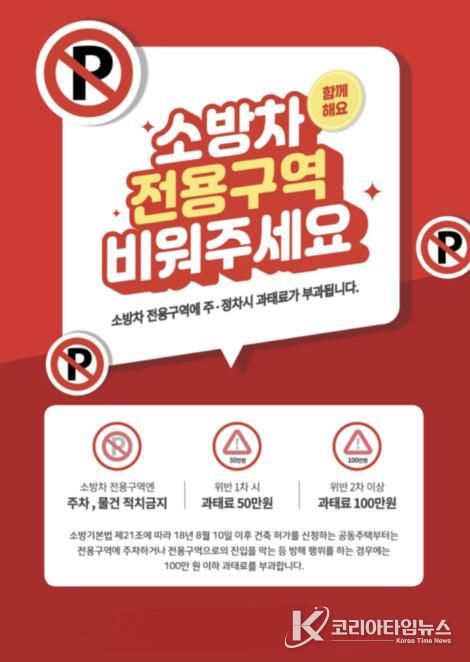 코리아타임뉴스 김태훈 기자 | 경산소방서는 화재 등 긴급 상황 발생 시 신속한 소방차 출동과 원활한 현장 활동을 위해 공동주택 내 소방차 전용구역 주차 금지 준수를 시민들에게 당부한다고 밝혔다.