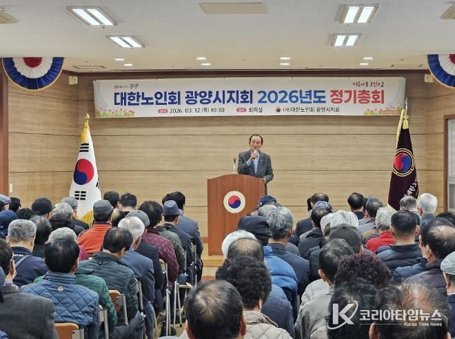 코리아타임뉴스 전남취재본부 | 광양시는 지난 12일 상록회관에서 (사)대한노인회 광양시지회가 2026년도 정기총회를 개최했다고 밝혔다.
