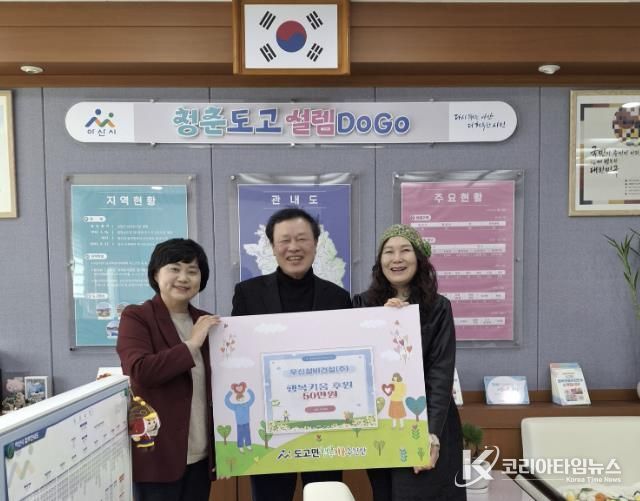 코리아타임뉴스 김택호 기자 | 아산시 도고면 행복키움추진단은 지난 13일 우신설비건설(주)으로부터 지역 내 취약계층 지원을 위한 후원금 50만 원을 전달받았다.