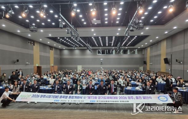 코리아타임뉴스 사회팀 | 양주시체육회가 지난 2일 경기섬유종합지원센터 컨벤션홀에서 2026 양주시장기(배) 종목별 통합개회식 및 '제72회 경기도체육대회 2026 광주' 출전 결단식을 개최했다. 이번 행사는 양주시체육회 주관으로 진행됐으며, 시장기 대회 참가 종목단체와 체육회 관계자, 경기도체육대회 출전 선수단이 참석한 가운데 체육인 간 화합과 결속을 다지는 자리로 마련됐다. 특히 종목별로 분산 개최되던 개회식을 통합하여 운영함으로써 종목 간 교류를 확대하고 체육인 간 유대감을 강화하는 계기를 마련했다.