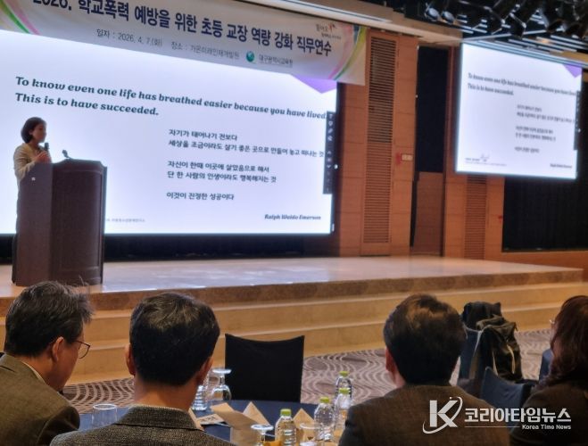 코리아타임뉴스 사회팀 | 대구시교육청은 4월 7일 초등 교장 240여 명, 4월 14일 중․고․특수학교 교장 240여 명을 대상으로 가온미래인재개발원에서 ‘2026. 학교폭력 예방을 위한 학교장 역량 강화 직무연수’를 개최한다.