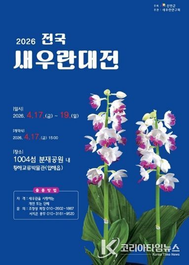 코리아타임뉴스 노승선 기자 | 신안군은 대한민국 자생란의 우수성과 가치를 널리 알리기 위해 ‘2026 전국새우란대전’을 오는 4월 17일부터 19일까지 3일간 황해교류박물관 일원(1004섬 분재정원)에서 개최한다.