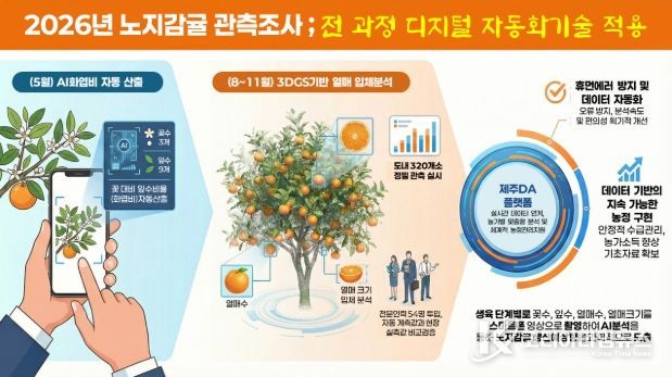 코리아타임뉴스 오영주 기자 | 제주특별자치도 농업기술원이 2026년산 노지감귤의 안정적인 수급 관리와 정밀한 생산량 예측을 위해 ‘2026년 노지감귤 관측조사’를 본격 추진한다.