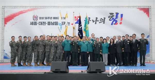 코리아타임뉴스 윤광희 기자 | 세종특별자치시가 5일 정부세종컨벤션센터에서 제32보병사단과 대전시, 충남도와 공동으로 창설 제56주년 예비군의 날 기념행사를 개최했다.