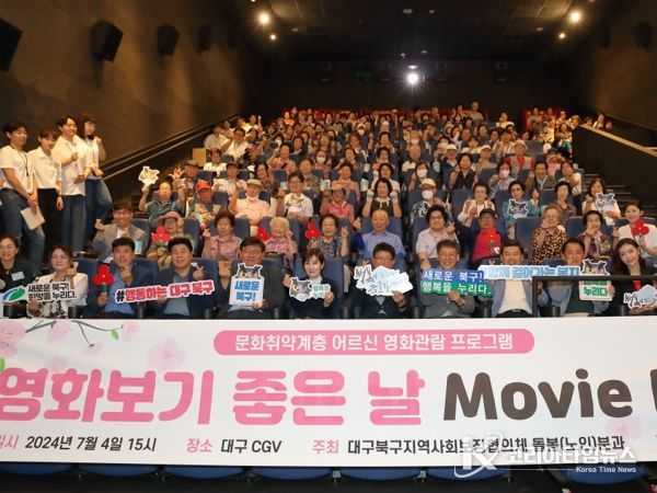 코리아타임뉴스 대구취재본부 | 대구 북구청은 지난 4일 CGV대구점에서 지역사회보장협의체 노인분과가 주관한 ‘영화보기 좋은날 Movie Day’행사를 개최했다고 밝혔다.