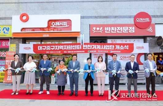 중구는 13일 프랜차이즈 반찬가게 ‘오레시피 대구남산자이하늘채점’ 사업단 개소식을 개최했다. 반찬가게 사업단은 저소득층의 일자리 창출과 자립을 위한 중구지역자활센터의 15개 자활근로사업단 중 하나이다.