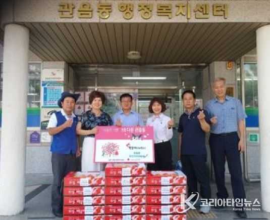 코리아타임뉴스 대구취재본부 | 대구 북구 관음동 주민자치위원회는 지난 8월 13일관내 경로당(8개소) 어르신께 여름나기용 과일을 전달했다.