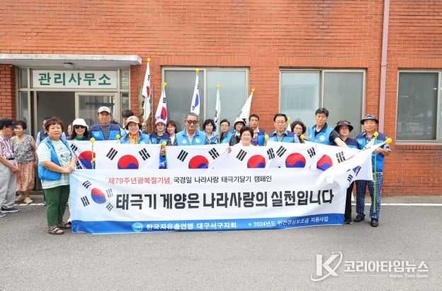 코리아타임뉴스 대구취재본부 | 한국자유총연맹 대구 서구지회는 제79주년 광복절을 맞아 지난 14일 비산4동 어린이집 및 비산 우방 아파트에서 태극기 달기 캠페인을 추진했다.
