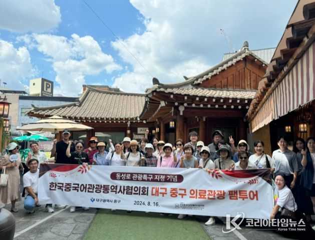 코리아타임뉴스 대구취재본부 | 대구 중구는 16일 동성로 관광특구 지정 축하 기념식에 맞춰 한국중국어관광통역사협의회 회원 30명을 대상으로 의료관광 팸투어를 진행했다.