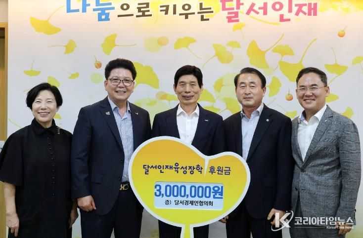 코리아타임뉴스 대구취재본부 | 대구 달서구가 20일 달서경제인협의회에서 지역 인재 육성을 위해 써달라며 3백만원의 후원금을 달서인재육성장학재단에 전달했다고 밝혔다.