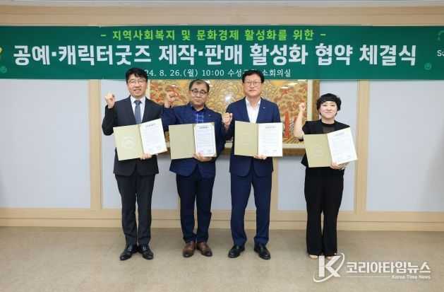 코리아타임뉴스 대구취재본부 | 대구 수성구는 지난 26일 지역 3개 복지기관과 공예·캐릭터 굿즈 제작·판매 활성화 협약을 체결했다.