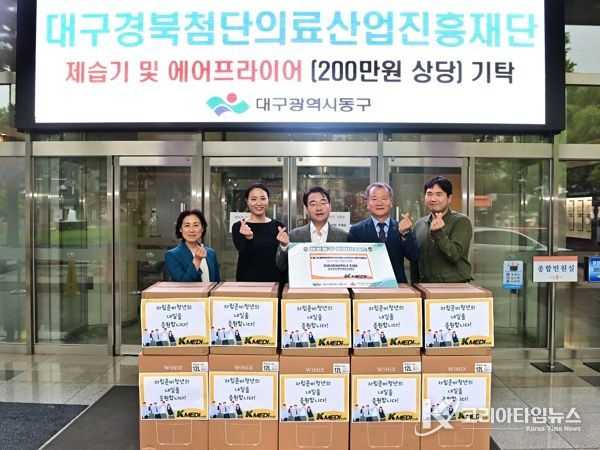 코리아타임뉴스 대구취재본부 | 대구경북첨단의료산업진흥재단은 지난 27일 동구청을 방문, 보호시설 종료 후 자립을 준비하는 청년들을 위해 제습기와 에어프라이어(200만원 상당)를 기탁했다.