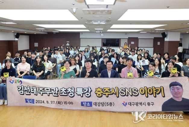 코리아타임뉴스 대구취재본부 | 대구 중구는 27일 구청 대강당에서 직원 200여 명을 대상으로 충주시 공식 유튜브 ‘충TV’ 운영자인 김선태 주무관을 초청해 홍보역량강화 특강을 진행했다.