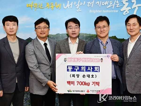 코리아타임뉴스 대구취재본부 | 동구의사회는 지난 28일 대구 동구청을 방문, 어려운 이웃에게 전달해달라며 백미 10kg 70포(250만원 상당)를 기탁했다.