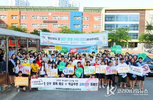 개학을 맞아 마련한 캠페인에서는 홍보 물품을 나눠주면서 어린이 교통사고 예방 수칙을 안내하고 교통안전 지도 및 학교주변 불법 주·정차 차량계도 등 안전한 교통문화 확산을 위한 운동을 전개했다.