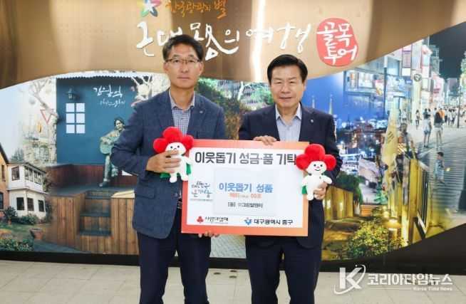 코리아타임뉴스 대구취재본부 | 대한전문건설협회 대구시회(회장 김 석)는 지난 2일 추석을 맞아 대구 중구청(구청장 류규하)을 방문해 이웃돕기 성금 200만원을 기탁했다.
