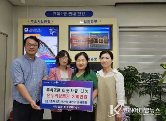 코리아타임뉴스 대구취재본부 | 효목1동 민간사회안전망위원회는 지난 5일, 고유의 명절인 추석을 맞아 지역 내 어려운 이웃을 위해 온누리 상품권(200만원)을 동 행정복지센터에 기탁했다.