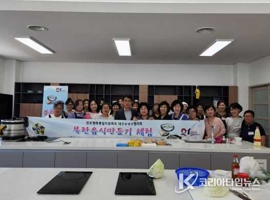 코리아타임뉴스 대구취재본부 | 민주평화통일자문회의 대구수성구협의회는 지난 4일 한국전통문화체험관 2층 동의보감 음식체험실에서 ‘북한이탈주민과 함께하는 북한음식 만들기 체험’ 행사를 개최했다.