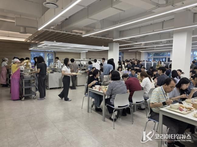이날 제공된 특식은 그라틴 스테이크, 투움바 파스타, 그린샐러드, 콩나물국으로 구성됐으며, 평소 하루 평균 배식 인원 400여 명을 훌쩍 넘는 700명의 직원이 몰리며 구내식당은 뜨거운 열기로 가득했다.