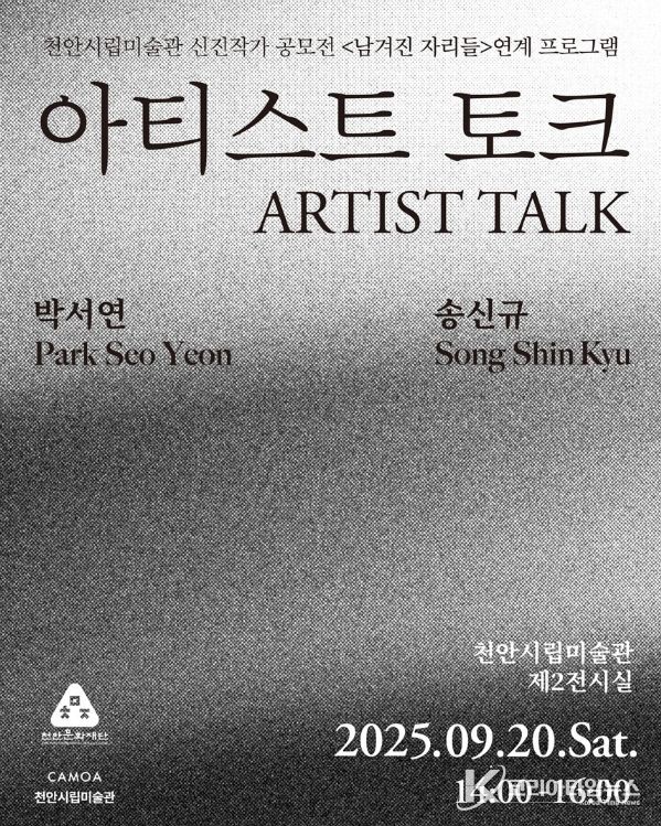 아티스트 토크는 선착순 성인 30명을 대상으로 진행되며, 신청은 오는 19일 오후 5시까지 천안시립미술관 누리집에서 하면 된다.