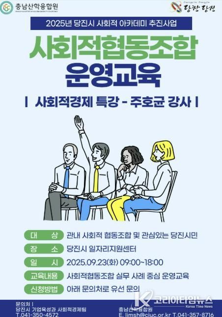 코리아타임뉴스 김택호 기자 | 당진시는 관내 사회적경제 조직과 사회적경제에 관심이 있는 시민을 대상으로 오는 23일 9시부터 18시까지 일자리 지원센터에서 2025년 당진시 사회적경제 아카데미를 운영한다고 19일 밝혔다.